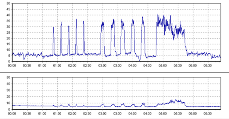 如下图,评估报告中有两个肌电图,上为盆底肌电图,下为腹部肌电图。在盆底肌评估过程中,患者需要根据指示进行盆底肌的收缩放松,从而观察盆底肌的肌力情况。在这个过程中,腹部肌肉需要避免参与代偿,否则影响评估结果与后续盆底康复训练。因此,养成良好的盆底收缩习惯,拒绝用腹部代偿是非常重要的哦!