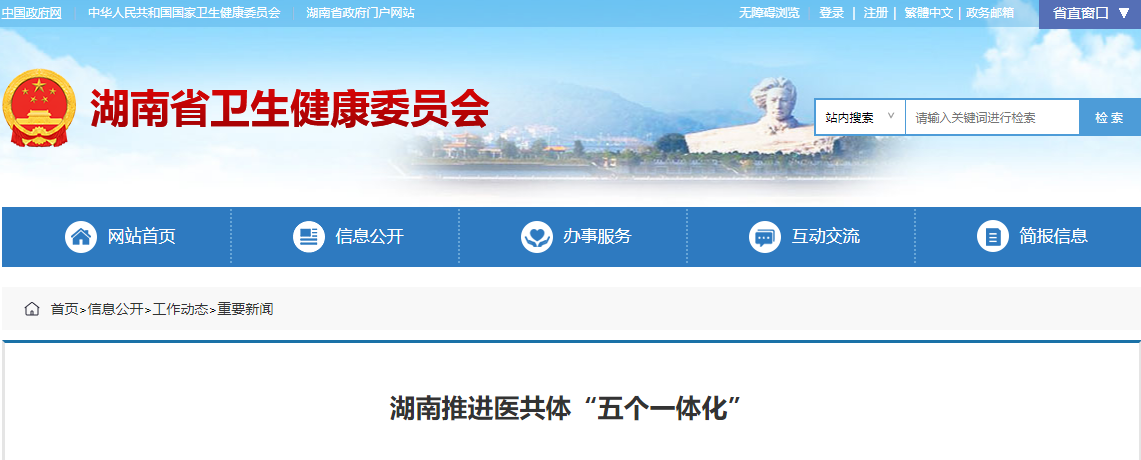 近日,湖南省卫生健康委印发《关于推进紧密型县域医共体“五个一体化”工作的通知》。该通知提出,以紧密型县域医共体为载体,推进急救网络一体化、人员管理一体化、药品管理一体化、信息平台一体化、管理考核一体化,着力提升能力、激发活力、优化服务,让群众就近享有更加公平可及、系统连续的健康服务。