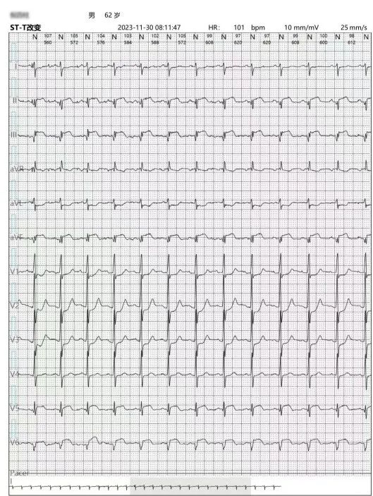 62岁的倪先生因间歇胸痛,金海湖镇社区医院给予佩戴心脏实时监护预警机(心安宝),佩戴当天,监护中心收到报警片段显示:短阵室性心动过速,主诊医生重点关注。监测第二日上午,患者要求提前摘机,主诊医生考虑到倪先生昨日异常心电数据,摘机后迅速联系远程心电监护中心后台值班人员和平谷区医院心内科值班二线医师,出具全面的心电诊断报告,发现倪先生摘机前8:11分出现了疑似急性下壁、侧壁心肌梗死的表现,便当即联系了倪先生及家属和平谷区医院心内科值班医师,高效联动将倪先生转诊至平谷区医院,行急诊冠脉介入手术治疗,最终转危为安。