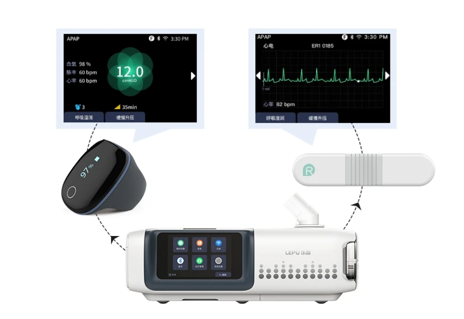乐普多导呼吸机,一款融合治疗、监测与管理于一体的智能设备,可以与乐普血氧仪、心电仪等产品的智能互联功能,更实现了长程血氧与心电的无缝监控。它能够实时捕捉睡眠中血氧的微小波动和夜间缺氧状态,通过AI-ECG智能分析技术,精准预警因打鼾引发的低血氧可能导致的心律不齐、卒中房颤等潜在心脏风险,确保用户在风险萌芽阶段即得到及时干预。