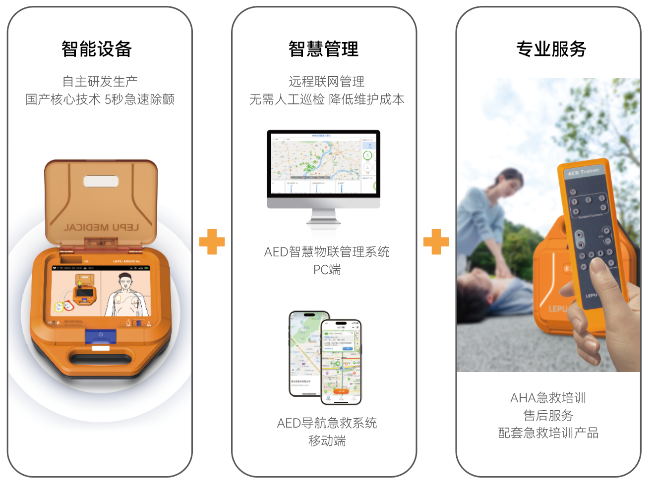 依托远程互联技术,乐普构建AED智慧远程管理云平台,实现AED设备的全周期远程批量管理,无需人工巡检,降低管理成本,与城市急救系统实现互联互通,高效匹配急救资源,进一步提升消防救援队伍急救效率和质量。