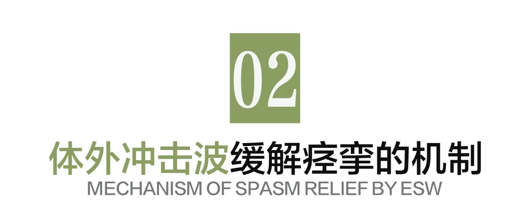 冲击波是能量突然释放而产生的在极短时限内达到极高峰值压力的三维压力脉冲,具有压力瞬间增高和高速传导的特性。目前体外冲击波缓解痉挛的机制可能有以下几种: